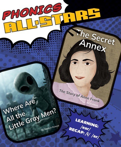 This final phase of the Phonics All-Stars program will round out a reader's phonics instruction by introducing alternative spellings for each phoneme. For example, readers will learn about the silent g in gnat and the silent k in knit. They'll learn how the /ch/ and /j/ sound can look different within different words. Long vowel sounds with different spellings are also covered. This set presents readers with progressively harder texts to give them the skills they need to tackle tricky phonics situations in the real world. Vibrant visuals accompany hi-lo text to allow for maximum reading comprehension. Developing readers will leave this phase of the program with the knowledge they need to succeed in reading!
