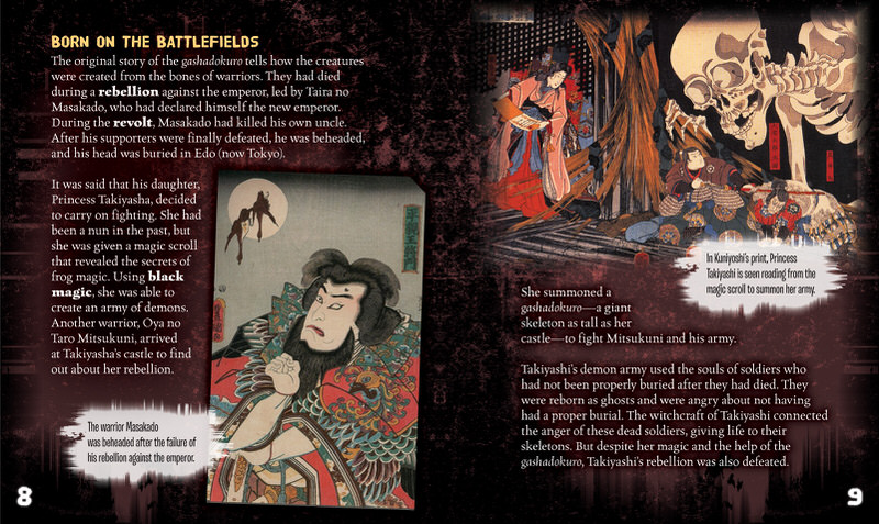 Gashadokuro are just one kind of many different fascinating creatures in Japanese mythology. These are giant skeletons that are said to roam around at night. This stimulating book tells the stories behind these and other popular creatures from legends known to many in Japan. Colorful images supplement coherent and captivating text. Additional information is presented in engaging sidebars. Curious readers will love learning about these interesting stories with the help of this thought-provoking volume.