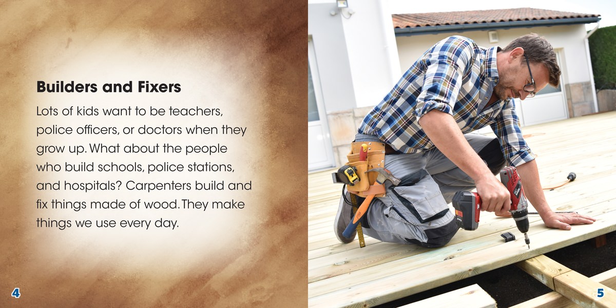 Even as the world changes, skilled labor will always be needed. There's nothing quite like the ability to create things with your skills and your own hands. Carpenters use their skills to build things we use every day, including items such as furniture, buildings, and bridges. They read building plans, choose materials, design, and create. This book teaches kids that to become a carpenter, you have to use a lot more than a hammer and nails; you need your brain too. Photographs and diagrams enable readers to make key connections with the text.