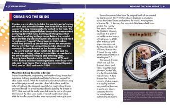 For anyone, riding a bike can be a great way to get some exercise and fresh air. But some riders want a thrilling, pulse-pumping ride, whether it's through the woods and over the rocks on a mountain bike or navigating track-based obstacles in bicycle motocross, or BMX. This book captures the excitement and rush of extreme biking, from its California origins to today's X Games and Olympics. Readers will explore some of the biggest names in extreme biking and learn about exciting and challenging races. They will also learn about the bikes, gear, styles, stunts, and lingo associated with this speedy sport.