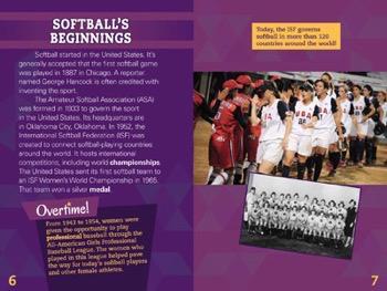 Being on a softball team teaches girls the value of teamwork, helps them become more confident, and allows them to grow into healthy and active women. Readers discover these and other important benefits of playing softball, while also learning the basic rules of the game. Informative main text is accompanied by eye-catching fact boxes and a detailed graphic organizer. Vivid photographs of softball players in action bring the excitement of the field to each page. Readers also explore the inspiring stories of famous softball players and successful teams, finding new role models as they learn about this popular sport.