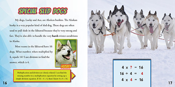 Real-life situations and relatable narratives introduce students to the principles of multiplication and division, an essential part of third-grade math. Age-appropriate language encourages learning, which will help readers to become fluent in more complex math topics. Engaging visuals complement high-interest topics, while visually appealing designs help to make the math concrete. Readers learn about the history of the Iditarod, the most famous sled dog race in the world, as they practice important multiplication and division skills. This volume meets CCSS Math Standard 3.OA.A.4.