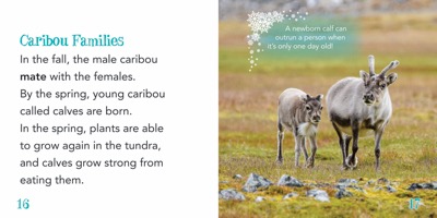 Caribou?also known as wild reindeer?live in the cold, snowy tundra, where food is scarce. Their specially shaped hoofs help them walk on snow and dig for the food underneath it. What do caribou eat? How do they avoid dangerous predators? Readers will find the answers to these and other questions in this engaging text, which supports basic elementary science curricula. Full-color photographs of caribou in their natural habitat make readers feel as if they are on their own expedition to the frozen tundra.