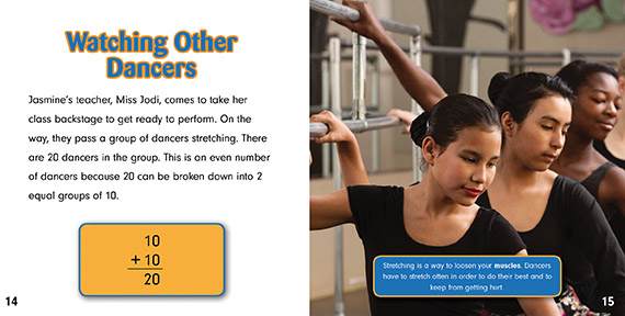 Real-life situations and relatable narratives guide math students through the fundamentals of algebra, which is an essential part of second-grade math. Readers will learn the skills needed to fluently add and subtract, while also building a foundation for the more complex skills that will be needed at higher levels of education. Engaging visuals complement high-interest topics, while visually appealing designs help to make the math concrete. A dance class provides a good setting for explaining how to break even numbers into two equal addends. This volume meets CCSS Math Standard 2.OA.C.3.