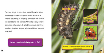 Understanding the principles of base ten is essential to understanding numbers and operations. Students will become familiar with the concept of place value through engaging narratives and real-life situations. Students will then be challenged to use place value in the context of algebraic operations, demonstrating the knowledge they’ve gained from reading. Eye-catching visuals help walk readers through the math problems, while age-appropriate language encourages learning. Readers learn to read and write numbers to 1000 as they discover amazing facts about a variety of bugs. This volume meets CCSS Math Standard 2.NBT.A.3.