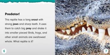 If you saw a reptile’s scales up close, could you guess what animal they belonged to? What about sharp teeth or long claws? In this uniquely laid out book, readers learn the characteristics of reptiles and then are introduced to several different kinds. First, an up-close photograph highlight some special feature of the reptile, such as a fat tail or long snout, and fun facts start to describe the reptile’s habits and home. Readers only need to turn the page to find out what animal it is and even more great science information about it!