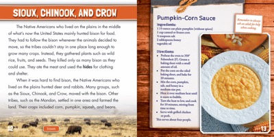 Readers gain a deeper understanding of and appreciation for Native American history and culture through learning about popular Native American foods. As they explore the engaging text, colorful images, and primary sources, they find fascinating facts about early Native American life, including what Native Americans ate and how they prepared their food. This essential part of social studies curricula is given a fun twist with the addition of simple recipes. As readers follow each detailed set of instructions, they create their own Native American dishes, making history come alive in a dynamic and delicious way.