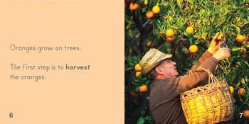 Readers learn the origins of their bright breakfast drink. They will learn how oranges on trees transform into juice in the fridge through this easy reader.