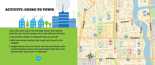 This visual and instructive look at satellite maps and street maps helps readers understand the symbols, road markings, and land features of these types of maps. Concentration on a smaller area helps readers really study them carefully. A follow-up activity encourages readers to draw their own street map of their town or neighborhood.