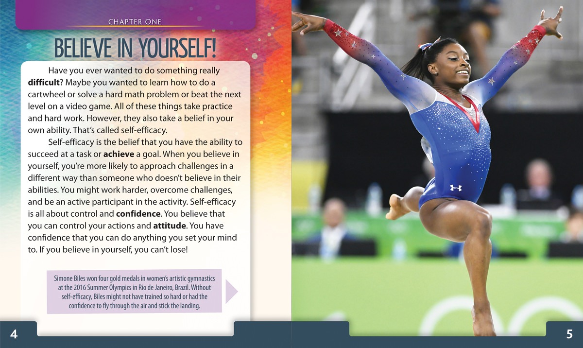 Self-efficacy, or believing in oneself, is an important tool to help young people achieve their goals. Readers will learn about how they can use confidence, a can-do attitude, motivation, and their experiences to increase their chances of success in real-life scenarios. This book highlights important skills for social and emotional learning (SEL), such as recognizing strengths and fostering self-confidence, that are outlined in the CASEL core competencies program. This guidebook gives readers the tools and strategies they need to practice self-efficacy in their everyday lives.