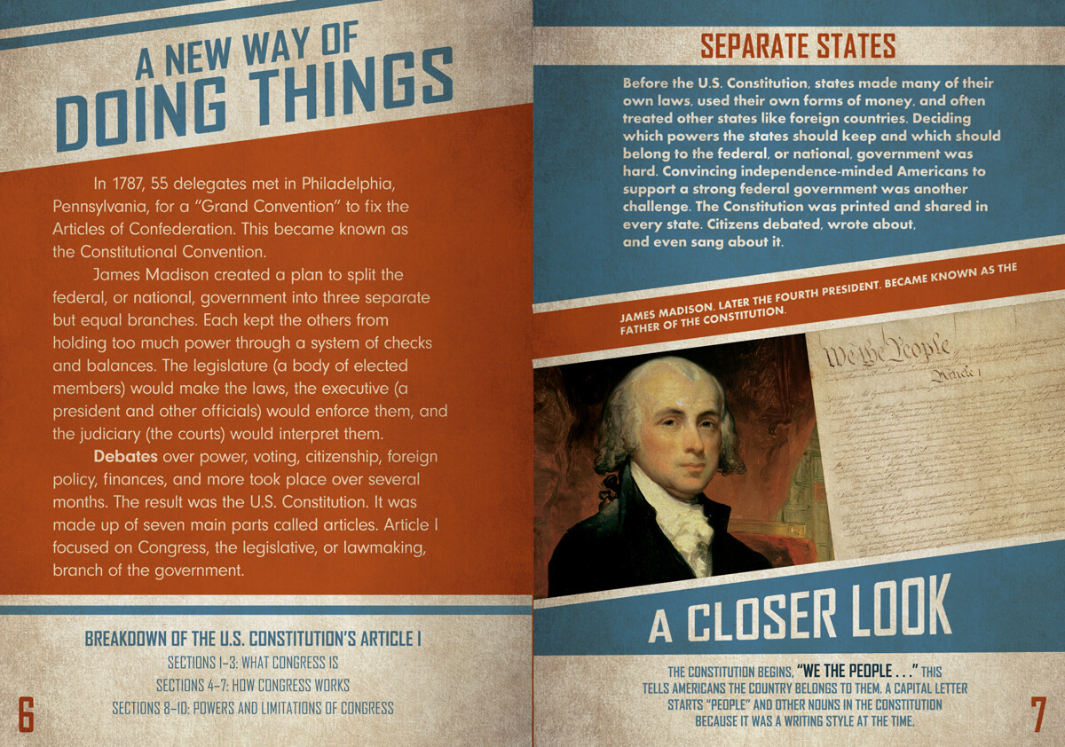 The U.S. Constitution is an essential part of governing the country. Its articles outline rules, laws, and procedures for our government. With this essential book, readers will learn about the intricacies of Article I and the inner workings of Congress. Through easy-to-understand language, vivid photographs, and interesting facts, readers discover how each part of Congress is elected, their responsibilities and limits, and their obligation to ensure that the U.S. government functions ethically and in the best interest of Americans.
