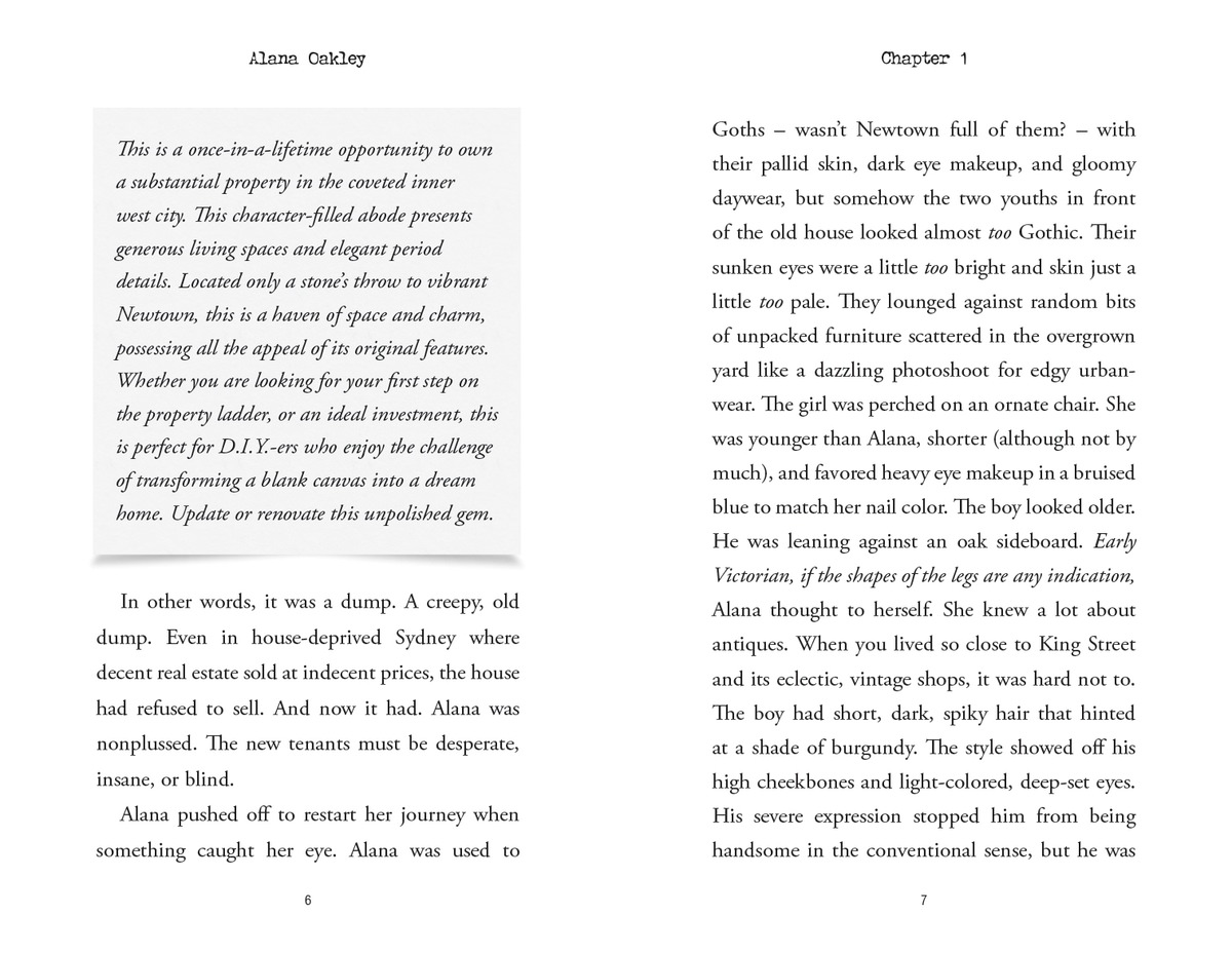 Alana Oakley suspects her new neighbors are vampires. Her friends hope Alana is right—everything they've read about vampires sounds so very cool and the new neighbors are so very hot... Despite her friends' warped sensibilities, Alana is determined to reveal the neighbors' bloody secret. If only her mom would stay out of trouble, Alana would have this mystery in the bag. Hard to know what Alana is dreading more this year: the kiss of immortality from a vampire or her mother throwing her a birthday party, but don't bother asking the woman in Alana's living room—she's already dead.