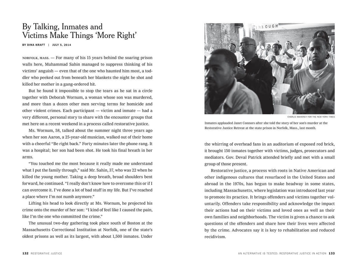 For decades, the American criminal justice system has followed a "tough on crime" model. That's starting to change, following increased criticism of prisons and policing. One model for reform has become especially prominent: restorative justice. Restorative justice prioritizes community-led reconciliation between victim and offender. Based on indigenous practices and motivated by inequities in our current system, restorative justice is premised on a radical redefinition of social harm. To understand this challenging topic, the articles in this book cover deep explorations of our current system, examples of restorative justice in practice, and an overview of the institutional barriers to change. Media literacy terms and questions are included, inviting readers to carefully consider how reporting of the topic has developed over time.