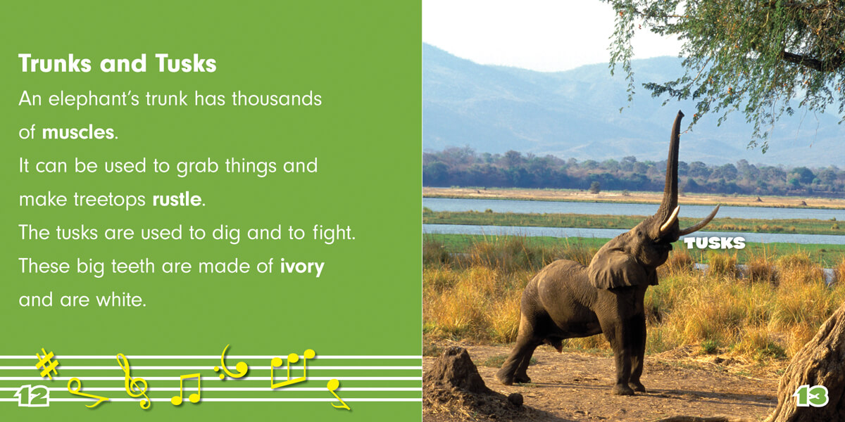 As the largest land animals alive, elephants are magnificent creatures. Readers will learn about these awesome animals through fun and informative poems. An excellent introduction to rhyming and verse, this captivating book also reinforces key life science lessons. The rhymes make it easy for young readers to remember key facts and figures. Vibrant photographs help engage developing and struggling readers.