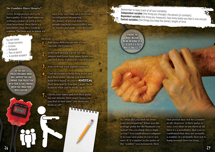 It might be a matter of life and death whether the stink coming from a sibling's bedroom is smelly socks or the odor of the undead, as in zombies! So, the real-life scientific methods and vocabulary in this entertaining and enlightening volume could save a life. Readers will be riveted as they're carefully trained to become paranormal investigators. They'll learn to make predictions, identify variables, analyze outcomes, and possibly avert a zombie apocalypse. They'll also delve into intriguing information about the mythology of zombies as well as bizarre zombie-like behaviors found in nature.